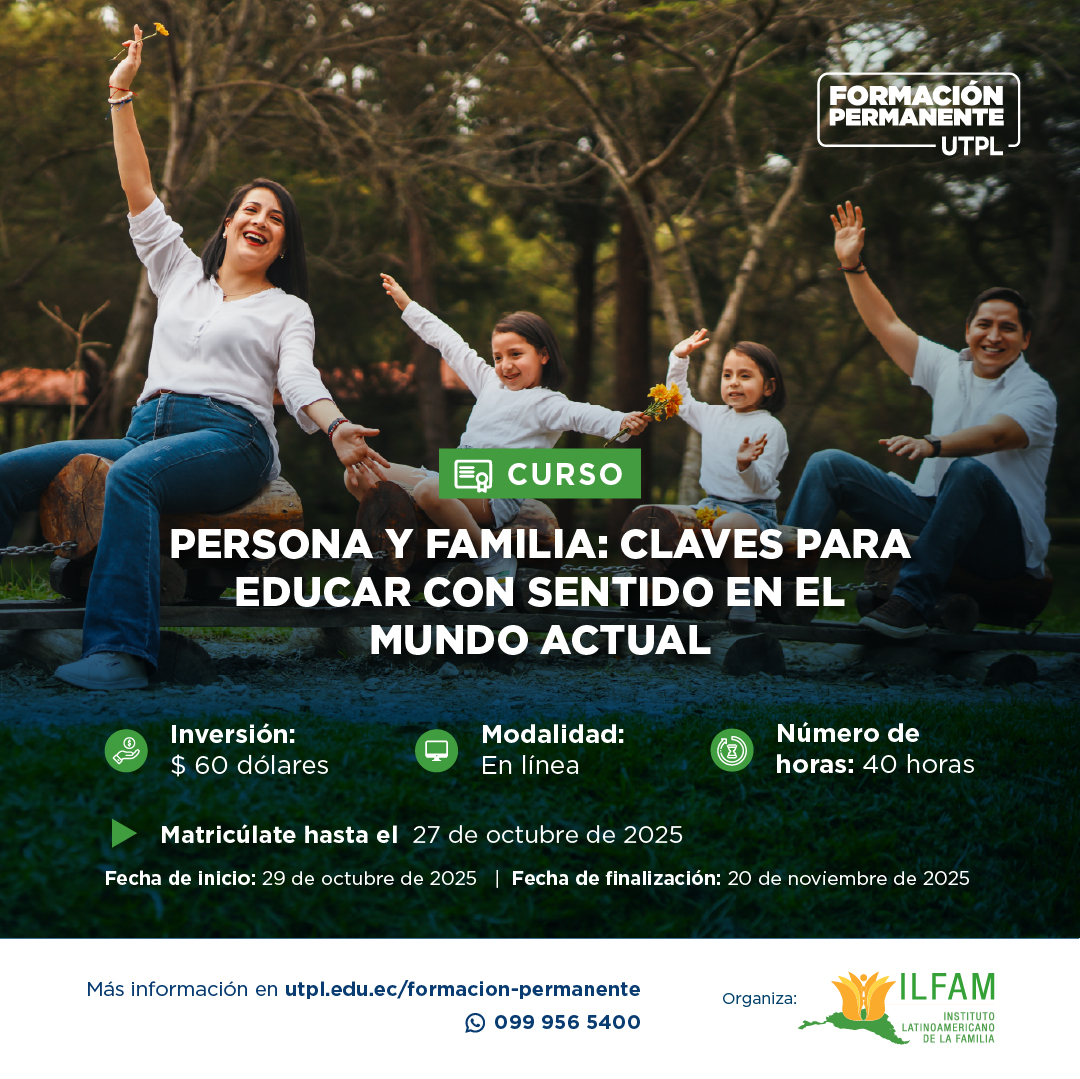El Instituto Latinoamericano de la Familia - UTPL, como entidad sin fines de lucro se dedica a promover y fortalecer la institución familiar desde el ámbito académico. Su compromiso radica en fortalecer los valores que sustentan la dignidad humana en el seno familiar.